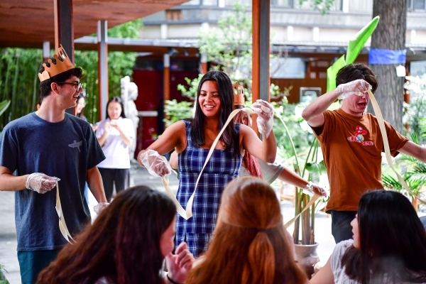在现场,来自耶鲁大学、宾夕法尼亚大学、布朗大学等高校的30名美国师生以及西南交大的师生们,在成都陕西会馆的百年川西庭院里体验到了海底捞外送的定制团餐。服务人员在现场详细讲解了每个菜品涮煮的时长、不同调味小料的调制方式。4名在7月过生日的美国大学生体验到了“海底捞式生日祝福”的惊喜,席间的川剧变脸、特色捞面表演也引起众多海外大学生参与。